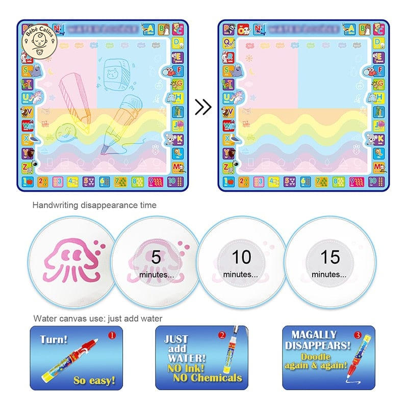 - Éducation et sécurité avant tout : Pas d'encre, pas de peinture. Non-toxique et écologique. La partie arrière de la toile est faite de nylon résistant à l'eau, assurant un espace propre et sûr pour vos enfants.