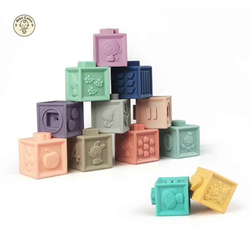 Voici un jouet complet pour développer la capacité de réflexion de votre enfant. Bébé peut empiler les cubes grâce aux formes convexes et concaves. Il reconnait les couleurs pastels, les formes d'animaux, et les chiffres présents sur les blocs en silicone. Ce jouet peut être utilisé dans le bain et a été conçu pour pouvoir être mâchouillé. Sa conception en caoutchouc naturel est tout à fait sûr pour l'enfant. Les pièces étant d'une assez grande taille, l'enfant peut jouer seul et développer son autonomie.