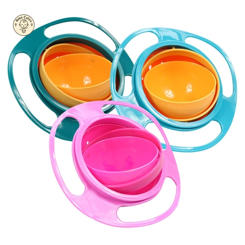 Le bol bébé anti-renversement est équipé d'un bol rotatif à 360° et vous donne un avantage sur les autres parents en gardant la nourriture de votre bébé dans le bol - et non sur le sol - peu importe dans quel sens il se tourne !